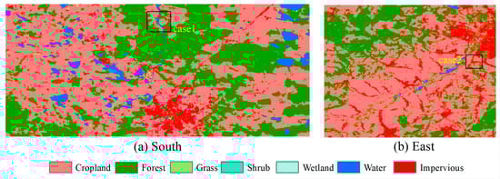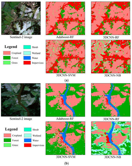 Classification maps in the case areas. (a) Case area 1; (b) Case area 2.