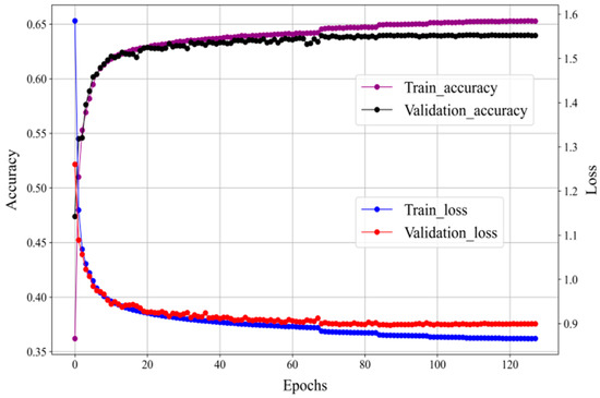 Through the previous experimental analysis, to determine the model parameters, we sought to assess the correlation between the iterative connection depicted in Figure 9 and the accuracy of the training loss value. As the number of iterations rose, the identification accuracy improved, and the function’s loss value steadily decreased, suggesting that the model’s convergence was adequate.