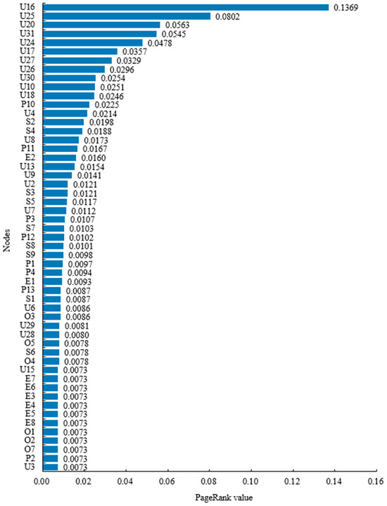 Critical node mining and assessment are important elements in complex network research when complex network theory is applied to risk analysis. In general, the criticality of nodes depends on the network model and topology. Currently, scholars have proposed various node criticality assessment methods from different perspectives, such as centrality algorithm [24], K-Shell decomposition [45], and PageRank algorithm [46]. In particular, the PageRank algorithm is a specialized algorithm developed by Google to measure the importance of a specific page relative to other pages in a search engine, and is a classic method for identifying the criticality of nodes in a directed complex network [47].