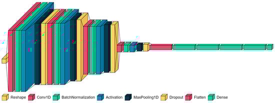 The overall CNN architecture for the current study is illustrated in Figure 2. Labeled acceleration data sampled at regular intervals were inputted into 1D convolutional layers. Interspersed between these layers were dropout layers, which served to mitigate overfitting of the neural network structure to the training data. Additionally, batch normalization layers were incorporated to normalize activations in the intermediate layers, thereby improving the accuracy.
