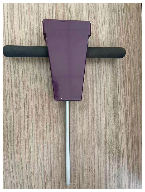 This study utilized soil from the orchard of the Jiangsu Academy of Agricultural Sciences in China. On 17 September 2023, field soil compaction tests were conducted using an SC900 soil compaction meter. The measurements were in kilopascals (kPa) with a resolution of 35 kPa, an accuracy of 103 kPa, and a range of 0–45 cm and 0–7000 kPa. The maximum insertion speed was 25 mm·s−1, and the maximum load was 95.25 kg. The cone head had a circular cone with a diameter of 20 mm and a cone angle of 30° (see Figure 1). The field compaction tests aimed to evaluate soil compaction, which refers to the contact status between soil particles and the size and arrangement of soil pores. This parameter has a significant impact on plant growth and the sustainable use of land. The soil compaction tests were conducted four times, and the specific data are presented in Table 1.