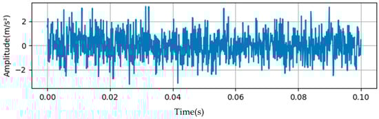 The signal is formed by the superposition of the frequency modulation component and cosine component, where the fundamental frequency is 50 Hz, the modulation frequency is 20 Hz, the frequency of the cosine component is 125 Hz, η(t) is a white noise term complying with normal distribution, the intensity is 1, and the time domain waveform of some signals is shown in Figure 4. In practical application, we can directly obtain the measured value instead of the original data. Therefore, ADMM-1DNet cannot acquire the prior knowledge from the test data, and another training set is required to provide the prior knowledge. To simulate this, 1024 sampling points in the experiment were defined as one signal unit and a training set containing 1200 signal units and a test set of 240 signal units were generated as experiment samples. The experiment r is now set to 20%.
