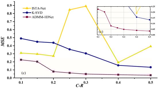 where f denotes the original signal, denotes the reconstructed signal, and fmax denotes the largest component of the vector f. The higher the value of the reconstruction signal-to-noise ratio, the better the reconstruction effect. The compression ratio r is defined as follows: