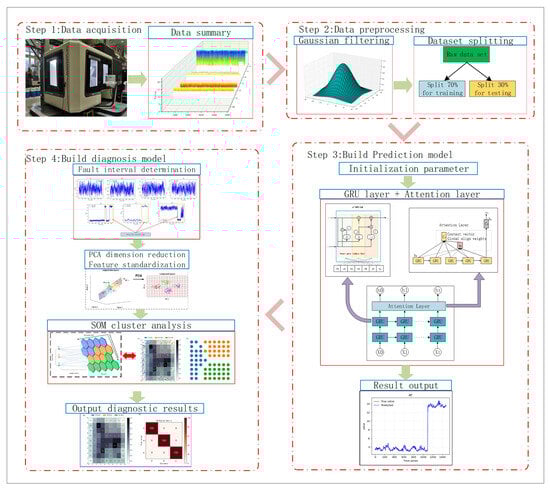 The rest of this article is structured as follows. The second part analyzes the fault of a servo drive system and determines three main fault types. The third part reviews the basic theories and techniques of LSTM and SOM and discusses their limitations. The fourth part introduces and analyzes the health management process of the machine tool servo system and introduces the Attention-MLGRU and PCA-SOM methods in detail. The fifth part introduces the process of predictive model selection and analyzes the equipment operation data set based on a health management system, including fault prediction and fault diagnosis. Finally, the conclusion is given in the sixth part.
