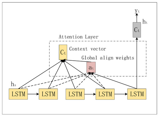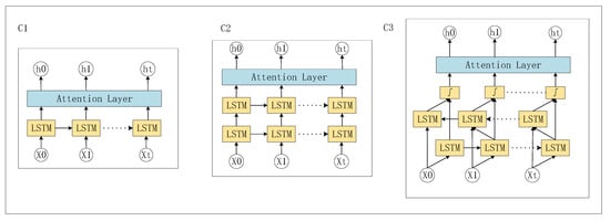 LSTM cell structure is shown in Figure 5. LSTM uses two gates to control the content of cell state c, one is the forget gate, which determines how much of the cell state at the previous time is retained to the current time . The other is the input gate, which determines how much of the network’s input is saved to the cell state at the current moment. LSTM uses an output gate to control how much of the state of the unit is output to the LSTM’s current output value .