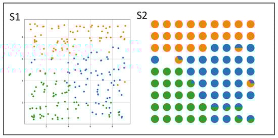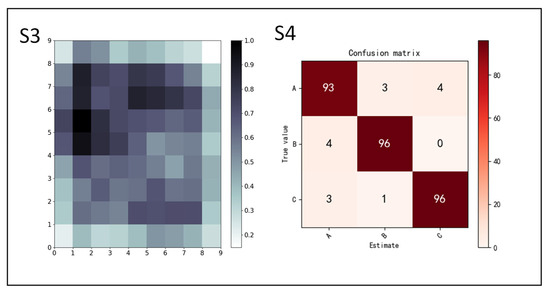 S3 in Figure 20 shows the UMAP weight graph, which is a representation of a weighted graph, and edge weights represent the possibility of connecting two points. To determine connectivity, UMAP extends a radius outward from each point, and when these radii overlap, it connects the points. UMAP accomplishes this process by selecting a radius based on the distance from each point to the NTH adjacent point. Then, as the radius increases, the possibility of connection decreases, making the UMAP map “fuzzy”. Finally, by specifying that each point must be connected to at least its nearest point, UMAP ensures a balance between local and global structures. The color depth of the map represents the similarity relationship between data points. S4 in Figure 20 is the confusion matrix diagram, also known as the possibility matrix or error matrix. Confusion matrices are visual tools that can be used for unsupervised learning and are the most intuitive and computationally simple way to represent the accuracy of a classification model.