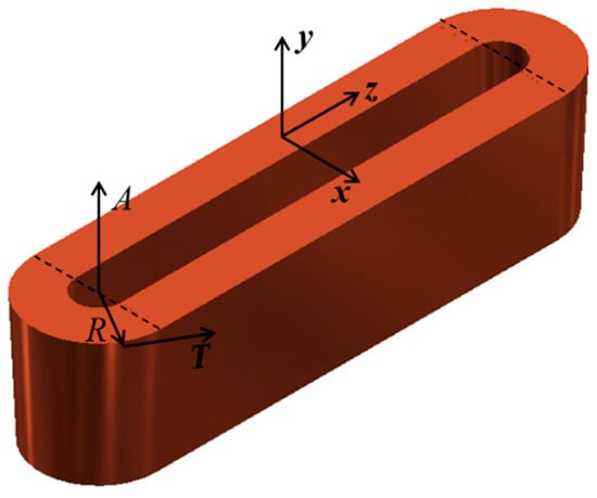 This method, however, does not adequately account for the unique geometry of the end windings, whose curved structure introduces additional complexities in the simulation. To address these challenges, the model adopts a local cylindrical coordinate system, aligning the system’s axis with the central axis of the end winding on either side. Within this framework, the equivalent anisotropic thermal conductivity is recalibrated to reflect radial, tangential, and axial orientations, with the adaptations detailed in Figure 2.