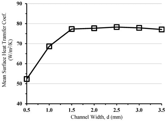 Area-weighted average surface heat transfer coefficients varying with increasing air channel widths.