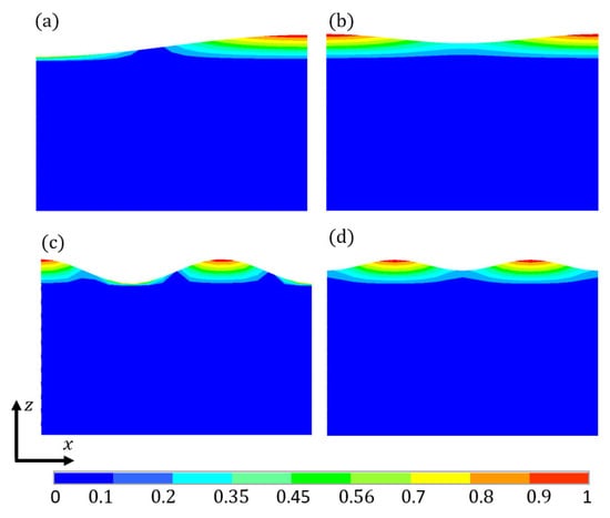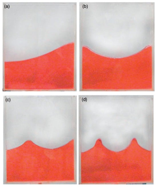 Two-dimensional view of liquid sloshing modes: (a) 1st; (b) 2rd; (c) 3rd; (d) 4th.