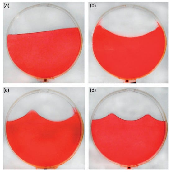 Liquid sloshing modes in the cylindrical liquid-filled container: (a) 1st; (b) 2rd; (c) 3rd; (d) 4th.