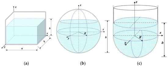 where is the gravitational acceleration; a represents the half width of the rectangular container; and h is the liquid level. According to Equation (4), the sloshing of the free liquid surface is attributed to gravity. The jth sloshing mode of the free liquid surface is