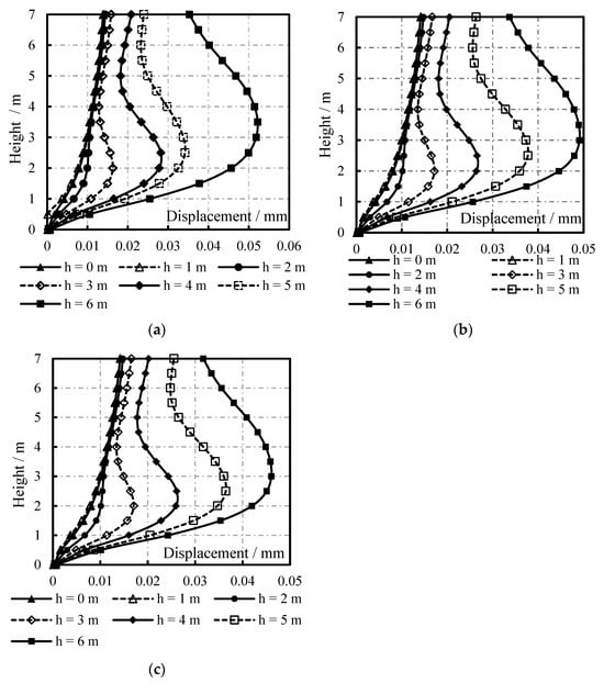 where is the maximum displacement of the sidewall at different water depths, and is the maximum displacement of the sidewall without water. The coefficient of acceleration along the sidewall height is