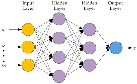 The FFN is shown in Figure 7, which is composed of an input layer, hidden layer, and output layer. The data are transmitted from the input layer to the output layer in one direction through the hidden layer without forming a loop. In each layer, neurons receive the output data of the previous layer and process them via weighted summation through activation function to obtain the output data and then pass them to the next layer. This structure enables the FFN to learn the nonlinear mapping relationship of the input data. The FFN is trained by the back-propagation algorithm. The partial derivative of the loss function to the network parameters is calculated by using the idea of gradient descent, and then the parameters are updated along the opposite direction of the gradient so that the loss function is gradually reduced.