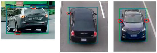 This attempts to estimate the length-to-width ratio of the frame rather than the width, which results in an inaccurate estimate of the width. Furthermore, the prediction box does not always fully include the vehicle in the real prediction process, as shown in Figure 9.