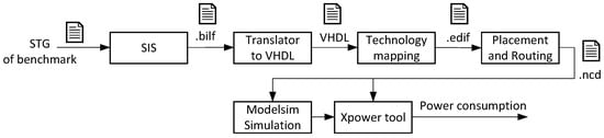 - Oelmann, B.; Tammemäe, K.; Kruus, M.; O’Nils, M. Automatic FSM Synthesis for Low-power Mixed Synchronous/Asynchronous Implementation. VLSI Des. 2001, 12, 167–186. [Google Scholar] [CrossRef][Green Version]