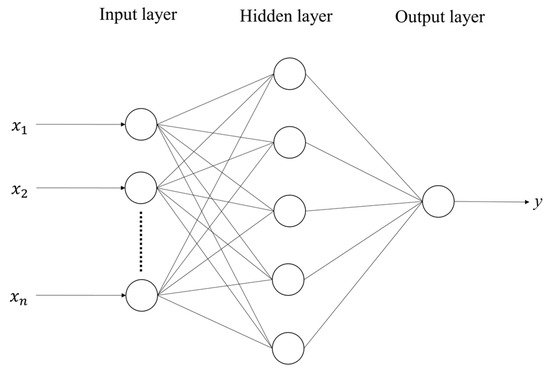 ANN is an information processing model that resembles the structure and function of neurons in the brain and consists of a large number of neurons built on top of each other [32]. As shown in Figure 3, ANN is composed of the input layer, hidden layer, and output layer. The role of the input layer is to accept the input data and pass the data into the hidden layer; the role of the hidden layer is to access the data of the input layer and then train to build the model. The role of the output layer is to access the data of the hidden layer, and then calculate the final output value [33]. The role of the output layer is to access the data of the hidden layer and then calculate the final output value.