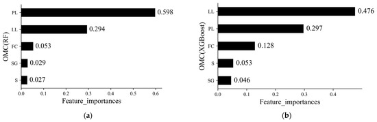 Feature importance of OMC; (a) RF; (b) XGBoost.