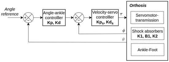 The orthosis design for modeling is depicted in Figure 1 and is explained in the following lines, with definitions for the most critical parts of the orthosis. Their control and synchronization are detailed in Section 2.1.