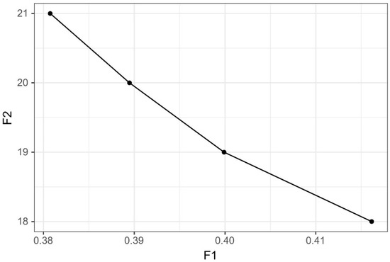 In Equations (1) and (2), represents the accuracy of a machine-learning-based state recognition (classification) algorithm, and and denote the standard forms of and , respectively, where is the state recognition error. Based on the characteristics of machine-learning-based algorithms, there is a contradiction between various sub-objectives of the multi-objective optimization problem mentioned above. Therefore, this study adopts the Pareto optimal solution idea to balance the removal of redundant indicators with ensuring the accuracy of railway engineering safety state recognition.