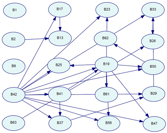 Finally, when some specific manifestations of risk causes occurred, there was a certain probability that the rail line facilities and equipment had exceeded their service period and were not replaced in a timely manner (B19), and earthquakes (B41), floods, mudslides, and landslides (B42) could occur. Therefore, railway engineering departments should pay special attention to the risk prevention process under the conditions of natural disasters and adverse weather.