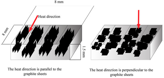 Figure showing the direction of heat according to graphite sheets of PSU-based composite filled with NG and NG + CB.