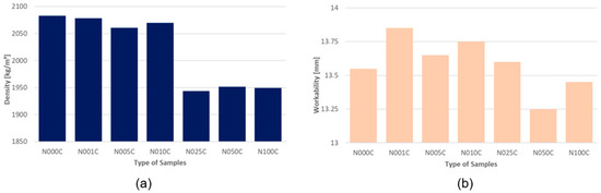 Evaluation of (a) density and (b) workability of all the samples.