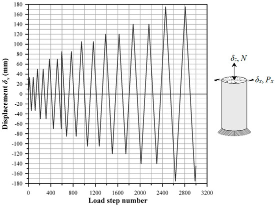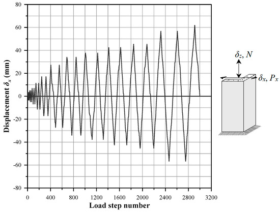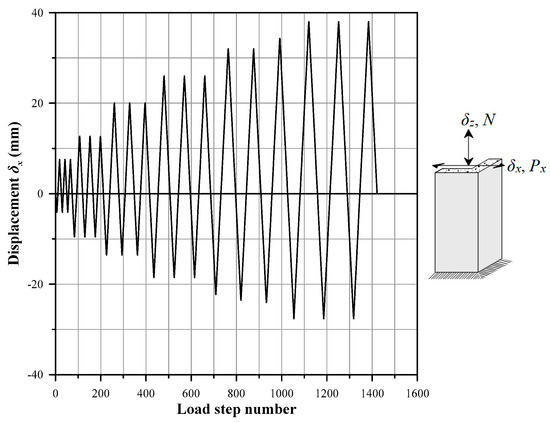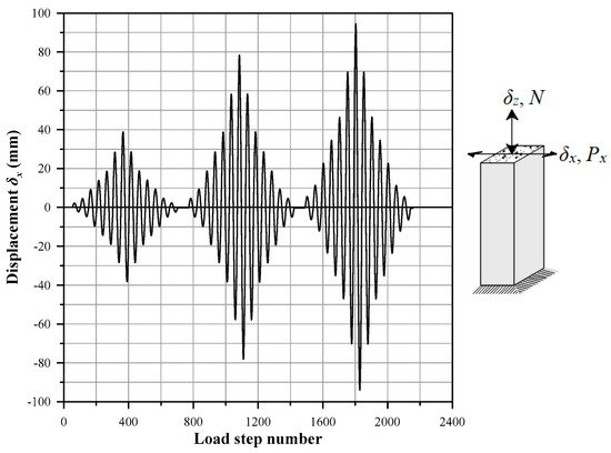 Pham and Li [15]—Specimen S1. Displacement loading history δx vs. load step number.