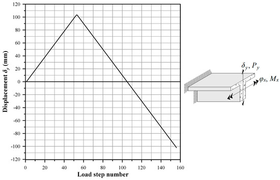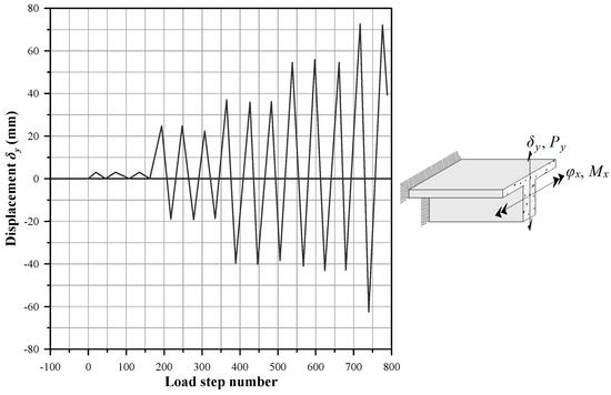 Ma et al. [16]—Specimen T-1. Displacement loading history δy vs. load step number.