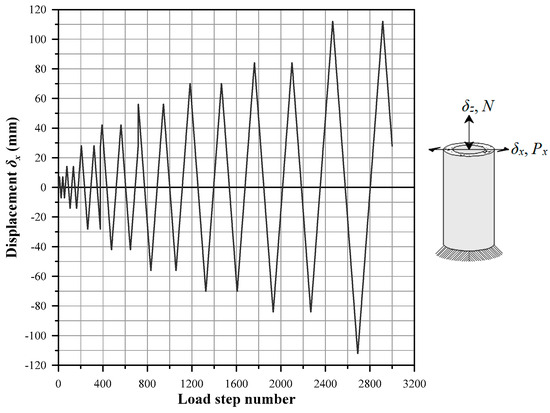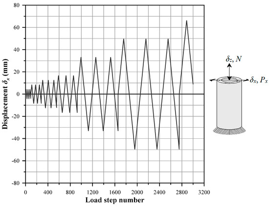 Wang et al. [14]—Specimen L60L. Displacement loading history δx vs. load step number.