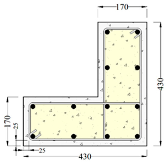 Wang et al. [14] performed experimental tests on six RC column type cantilever specimens. These specimens represent typical cross sections of framed structures. All specimens had an equilateral L-shaped cross section. The purpose of the experimental program was to investigate the influence of the axial load and the spacing of transverse reinforcement on the failure mechanism.