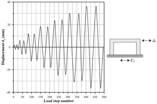 Bousias [3]—Specimen S0. Displacement loading history δx vs. load step number.