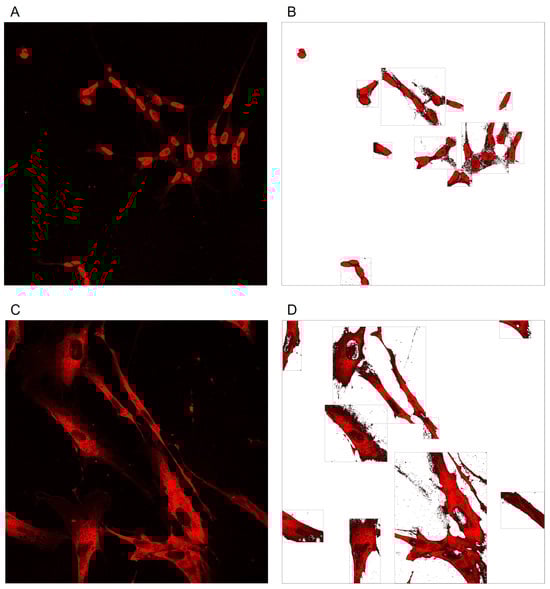 5]. By implementing automation, both productivity and statistical rigour can be ensured, as it allows for objective analysis, even with large datasets. Moreover, automated digital image analysis guarantees the accuracy, objectivity, and reproducibility of the obtained data. Many of the different methodologies capable of automatically or semi-automatically analysing images of biological samples are based on segmentation methods. Automatic cell segmentation involves the extrapolation of single cells (regions of interest, ROIs) from the background and the discrimination of multiple cells if they are closely attached [