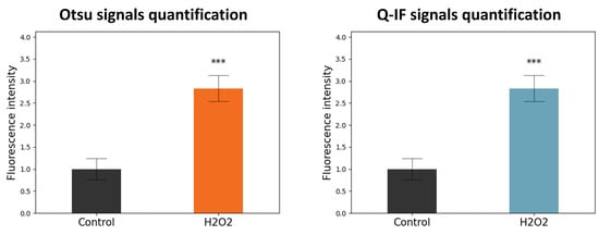 Furthermore, the comparative analysis between the Q-IF and Otsu thresholds returns comparable results, evaluating both the signal fold increase and the statistical analysis. This result can be considered significant, as Otsu’s technique is widely recognised as one of the best-performing image thresholding methods [