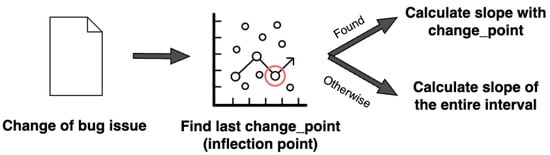 Algorithm 1 operates using the changepoint library of R. After importing the necessary libraries, it takes the input of each OSS, which includes date, and the output, which consists of residual bug issues. Subsequently, the library is used to find the change_ point where the slope changes and calculate the slope of the last segment. In some cases, the slope value may remain constant over the entire segment. Therefore, in such cases, the calculation is performed over the entire segment.