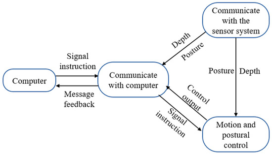 The robot’s control system software mainly includes a multi-task scheduler based on the RTOS operating system (lower computer) [20], bootloader remote upgrade software, Modbus poll remote control software (the version number is 9.2.2.1343), and a control handle (upper computer). The program of the lower computer is mainly used to read various sensor data and carry out motion control of the robot, while the upper computer can visually display various data collected in the control window [21]. The upper computer and the lower computer can interact with data in real time to facilitate manual control of the robot.