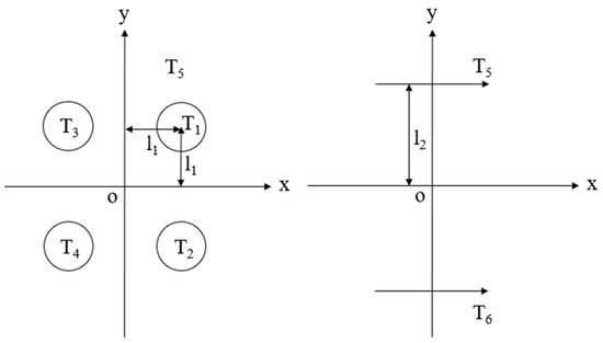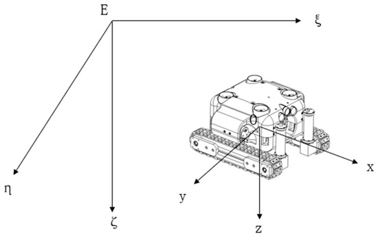 In order to simplify the problem, the kinematic coupling between the mutual vertical planes is ignored, and it is assumed that the robot only moves in the horizontal plane or vertical plane direction when carrying out underwater operations, that is, the robot center of gravity (G) will not move synchronously in the two mutual vertical planes. At the same time, considering that the center of gravity of the robot coincides with the origin (O) of the moving coordinate system, the space motion equation of the robot in the horizontal plane and the vertical plane can be simplified as follows: