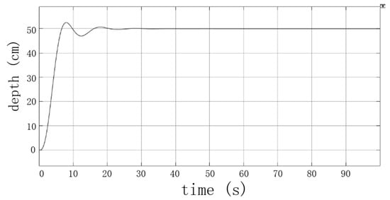 The control system was introduced into the PID controller, and then modeling and simulations were carried out to obtain the simulation curves for the fixed depth and fixed bow conditions, as shown in Figure 20 and Figure 21, respectively.