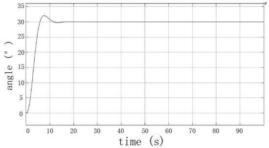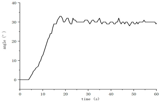 In order to test the real control performance of the robot control system, a fixed depth of 0.5 m and a fixed bow of 30° were set for control tests. The depth control uses the depth sensor, and the heading control uses the gyroscope to collect and feedback information. The change curves of the two experimental angles are shown in Figure 23 and Figure 24.