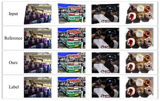 It is evident that image completion can fully rectify the image into a rectangle (Figure 5), but it relies heavily on pixel-level adjustments based on context, making it overly dependent on surrounding information. This dependency may lead to the inaccurate filling of missing parts, resulting in generated images that appear unrealistic or unnatural, and may even cause a certain degree of decrease in image clarity [36,54]. In contrast, the rectangular images generated by RIS-DMRN closely resemble the real label images. RIS-DMRN performs well in maintaining the global rigidity or curvature of target objects in the image, attempting to preserve the original appearance without introducing local barrel or pincushion distortions.