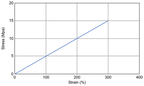 Table 4 presents the material properties of the rubber expansion joints used in expansion joint devices [4]. As discussed in the introduction, rubber expansion joints primarily serve as water trays and are not subject to specific regulations based on bridge type. Consequently, they conform to basic standards, such as a maximum tensile strength of 15 MPa and a strain capacity of 300%, in accordance with KS (Korean Standards & Certification). In particular, the material characteristics used for this finite element analysis are graphically represented in Figure 3.
