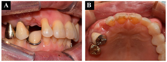 Initial intraoral photographs. (A) Oblique view. (B) Occlusal view.