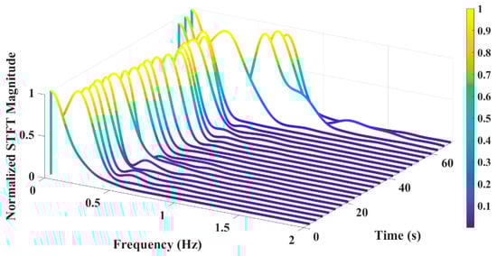 Figure 12 displays the STFTs of the experimental tests and reveals the dominant frequencies within each time interval. The most dominant frequency in each interval corresponds to the maximum magnitude of the FFT within that interval. By determining thresholds as conditions for switching between breath types and utilizing the dominant frequency in each time window, breath types can be classified.