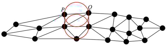 - The Alpha Shape algorithm was used for boundary extraction because it has good shape retention and a faster calculation speed when extracting point cloud road boundaries, and can realize a flexible description and a fast extraction and analysis of point set geometry [37]. The point cloud was projected onto the plane, and delay triangulation was performed on the projected points. For any edge of the triangulation with endpoints and , two circles were drawn with and as the centers and radius of . The coordinates of and are shown in Equations (5) and (6), respectively:where is the vector composed of endpoints and ; is the radius of circle; and are the horizontal and vertical coordinates of the point; and and are the transverse and vertical coordinates of point . As shown in Figure 6, if at least one of the circles does not contain any points from the point set, then the endpoints of that edge are determined to be boundary points.