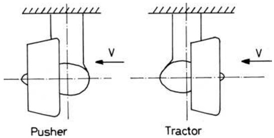 Azimuthing thrusters or azimuthing propulsors, which have been widely utilized for numerous years, are characterized by either non-ducted or ducted propeller configurations, further subdivided into pusher or tractor units, as illustrated in Figure 4.