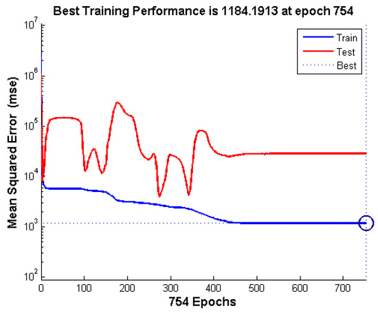 The network performance function was determined by the mean square error (MSE) that is represented in Equation (3). For comparisons, the statistical approach of the mean absolute percentage error (MAPE) value was utilized and represented in Equation (4) [16].