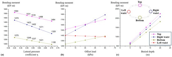 - The influence of structural buried depth on structural response is generally proportional. In cases of changes in offset load and lateral pressure coefficient, the negative bending moment regions at the waists of the structure are more sensitive. Considering unexpected conditions such as ground surface surcharge or adjacent construction activities during the service period, special attention should be paid to the structural safety reserves of the negative bending moment regions at the waists.