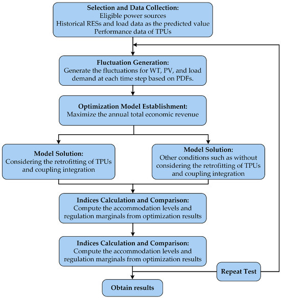 Flowchart of the evaluation process for RESs accommodation capability and TPUs’ flexibility.
