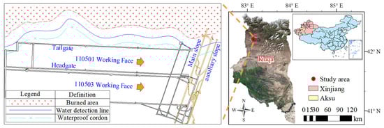 Yushuling Coal Mine is located in the northern part of Kuqa County, Aksu Prefecture, Xinjiang. It is the junction area between the southern foot of the Tianshan Mountains and the northern edge of the Tarim Basin. Yushuling Coal Mine uses inclined shaft development, with a production capacity of 1.2 million tons per year. There are five mineable coal seams in the minefield area, namely the No. 5, No. 7, No. 8, No. 10, and No. 12 coal seams. The coal seams of the Yushuling Coal Mine are generally monoclinic in shape, with a high northwest and low southeast, and the mine surface altitude range is between 1743.80 m and 1907.77 m.