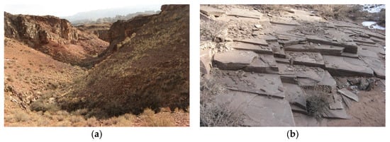 Mine surface topography. (a) Surface gullies. (b) Surface fractures.