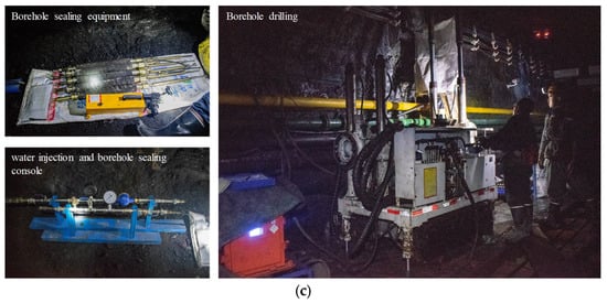 Borehole layout and equipment of WFFZ observation. (a) Top view of observation borehole. (b) Section view of observation borehole. (c) Observation equipment.